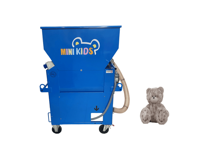 Nous sommes heureux de vous présenter la toute nouvelle machine d’insufflation MINI KIDS, spécialement adaptée pour un parfait remplissage des peluches.